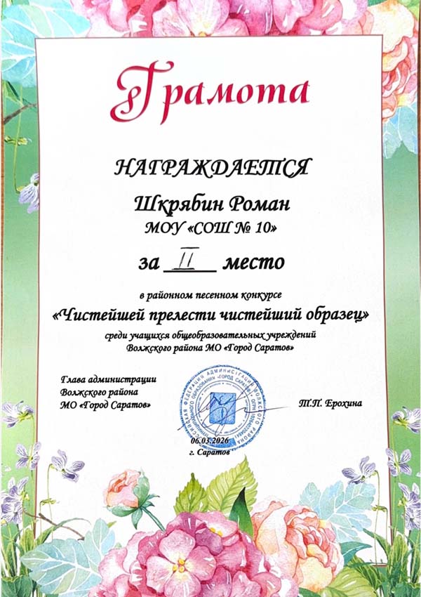 Поздравляем обучающихся 11а класса Меденцеву Александру и Шкрябина Романа с заслуженным 2 местом в районном песенном конкурсе "Чистейшей прелести чистейший образец"!