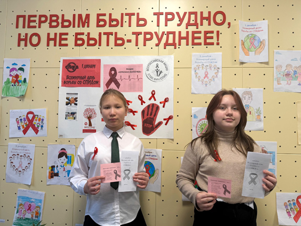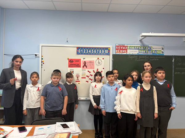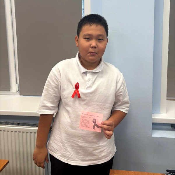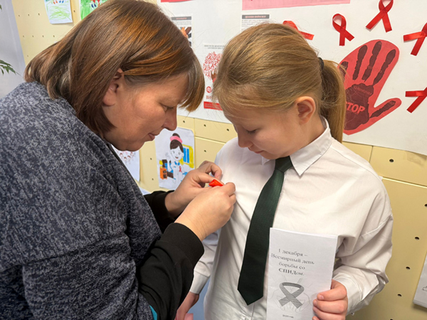 В рамках акции "Красная ленточка" обучающиеся 1-11 классов могли прикрепить символическую ленточку, выражая поддержку людям, инфицированным ВИЧ.