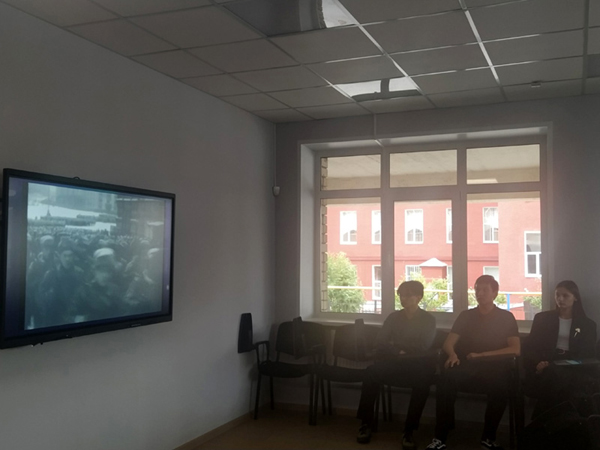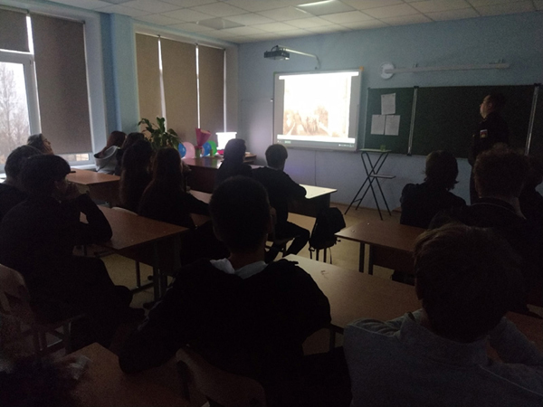 Перед началом урока мужества состоялась демонстрация видеообращения полномочного представителя Президента Российской Федерации в Приволжском федеральном округе И.А.Комарова.