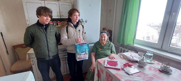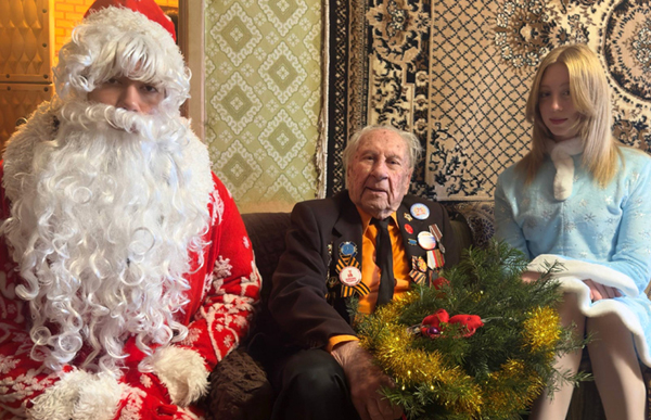 "С Новым годом, наш герой!" — эти слова, сказанные от всего детского сердца, дорогого стоят. Дед Мороз и Снегурочка (в лице наших старшеклассников) пришли не просто с подарками, а с глубоким поклоном.